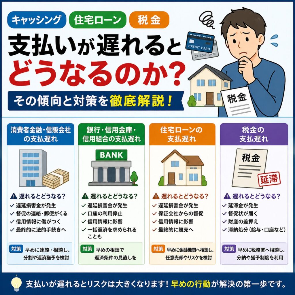 キャッシング、住宅ローン、税金支払いが遅れるとどうなるのか、その傾向と対策を徹底解説